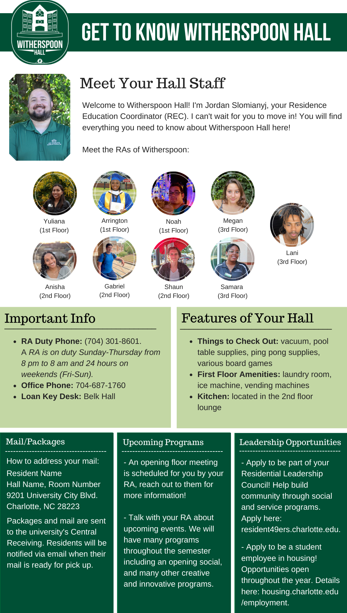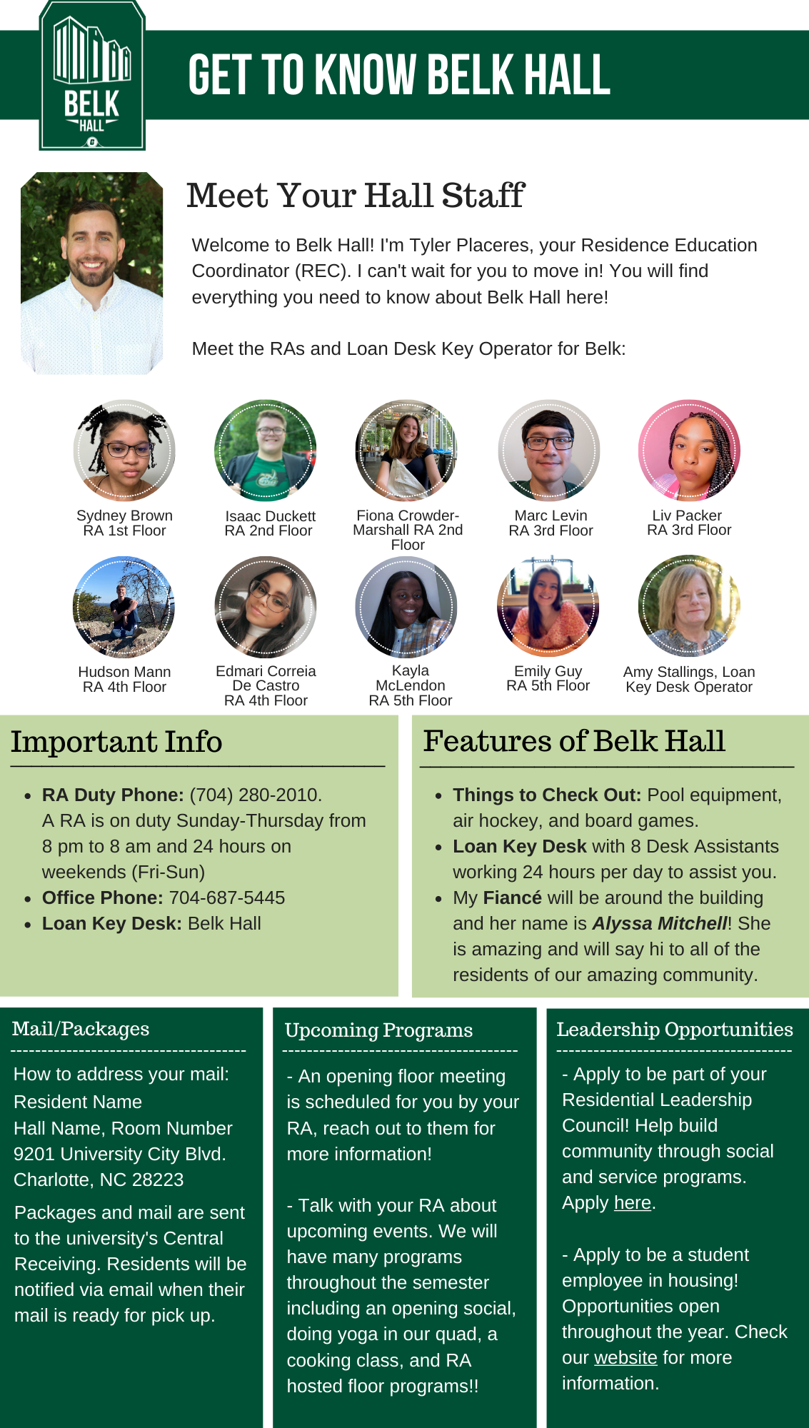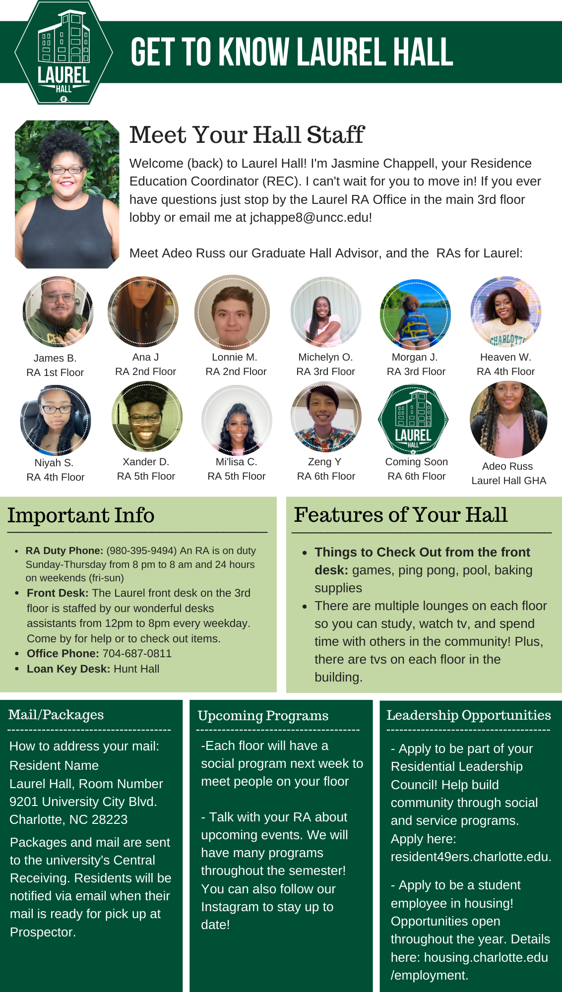 Please find your hall's Welcome Newsletter below: Belk Hall Greek Village Hawthorn Hall Holshouser Hall Hunt Hall Laurel Hall Levine Hall Lynch Hall Martin Hall Miltimore Hall The Grove (Oak, Elm and Pine Halls) Sanford Hall Scott Hall Wallis Hall Witherspoon Hall