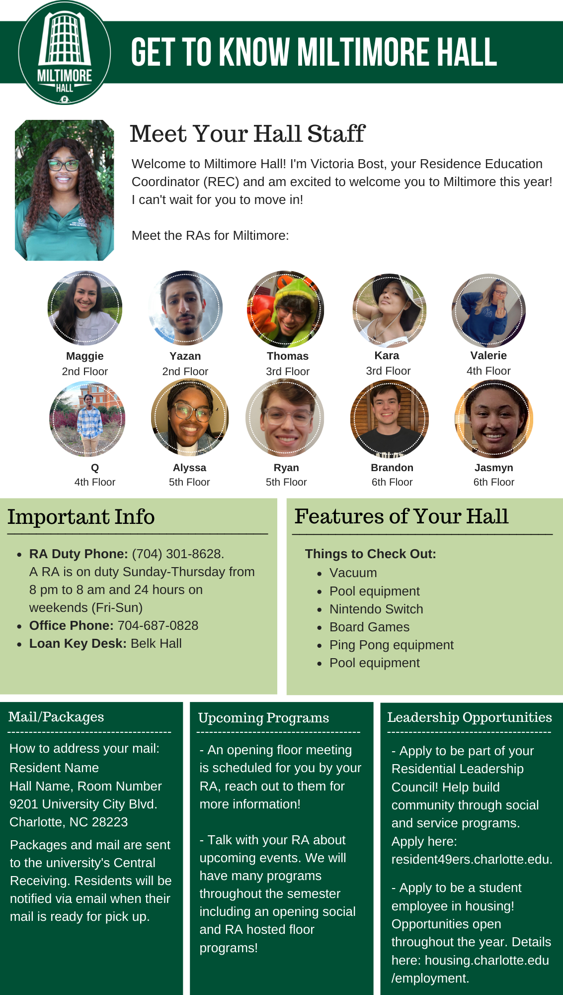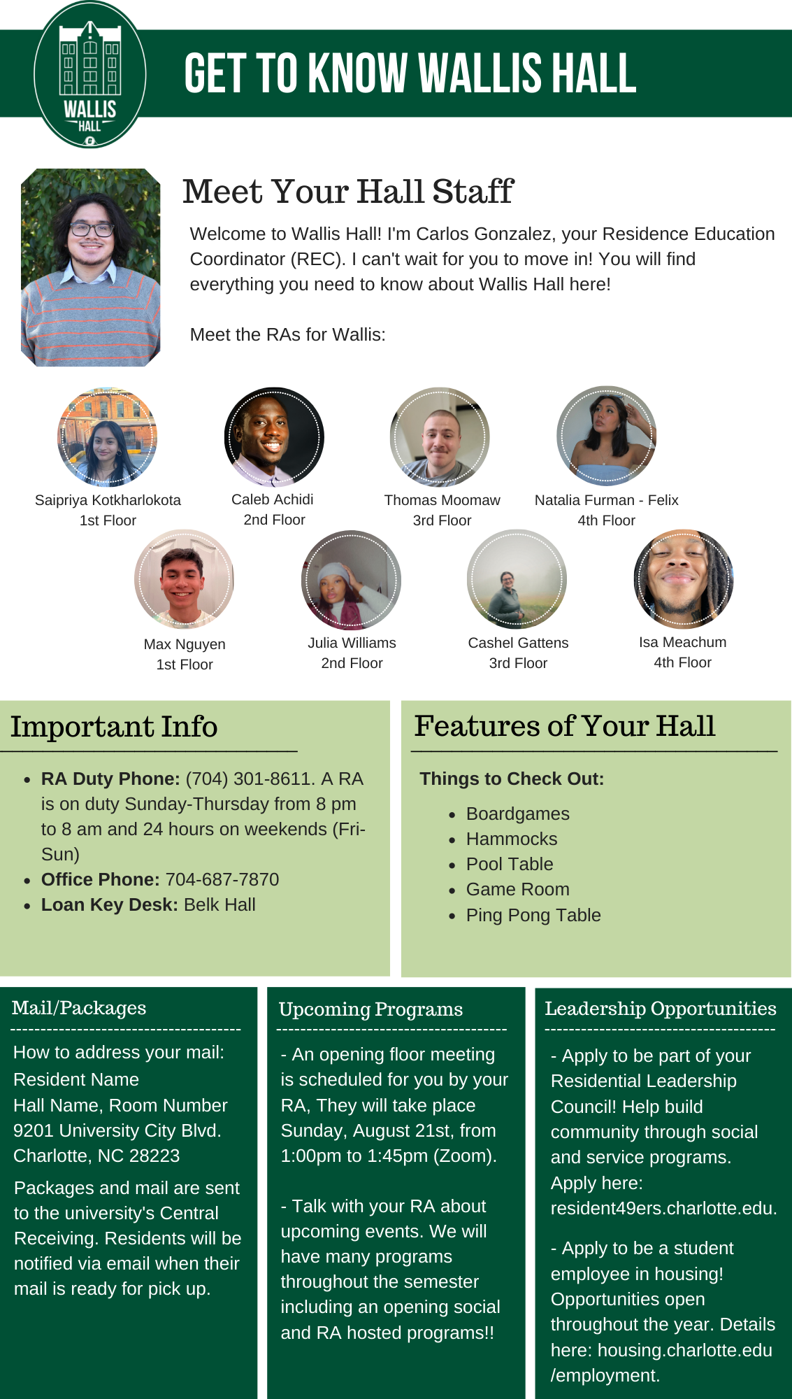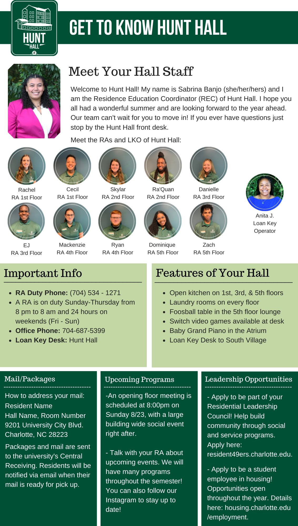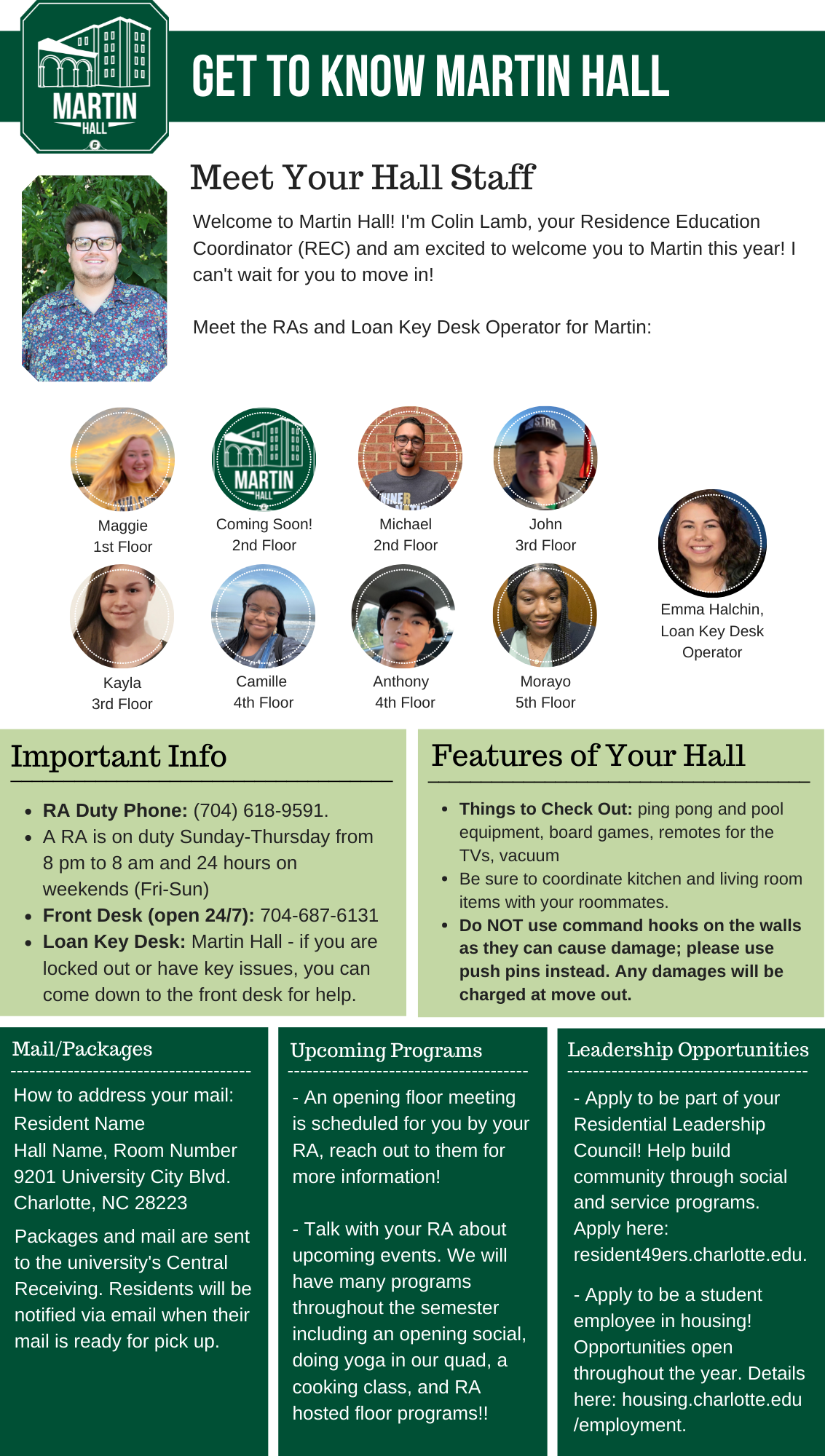 Please find your hall's Welcome Newsletter below: Belk Hall Greek Village Hawthorn Hall Holshouser Hall Hunt Hall Laurel Hall Levine Hall Lynch Hall Martin Hall Miltimore Hall The Grove (Oak, Elm and Pine Halls) Sanford Hall Scott Hall Wallis Hall Witherspoon Hall